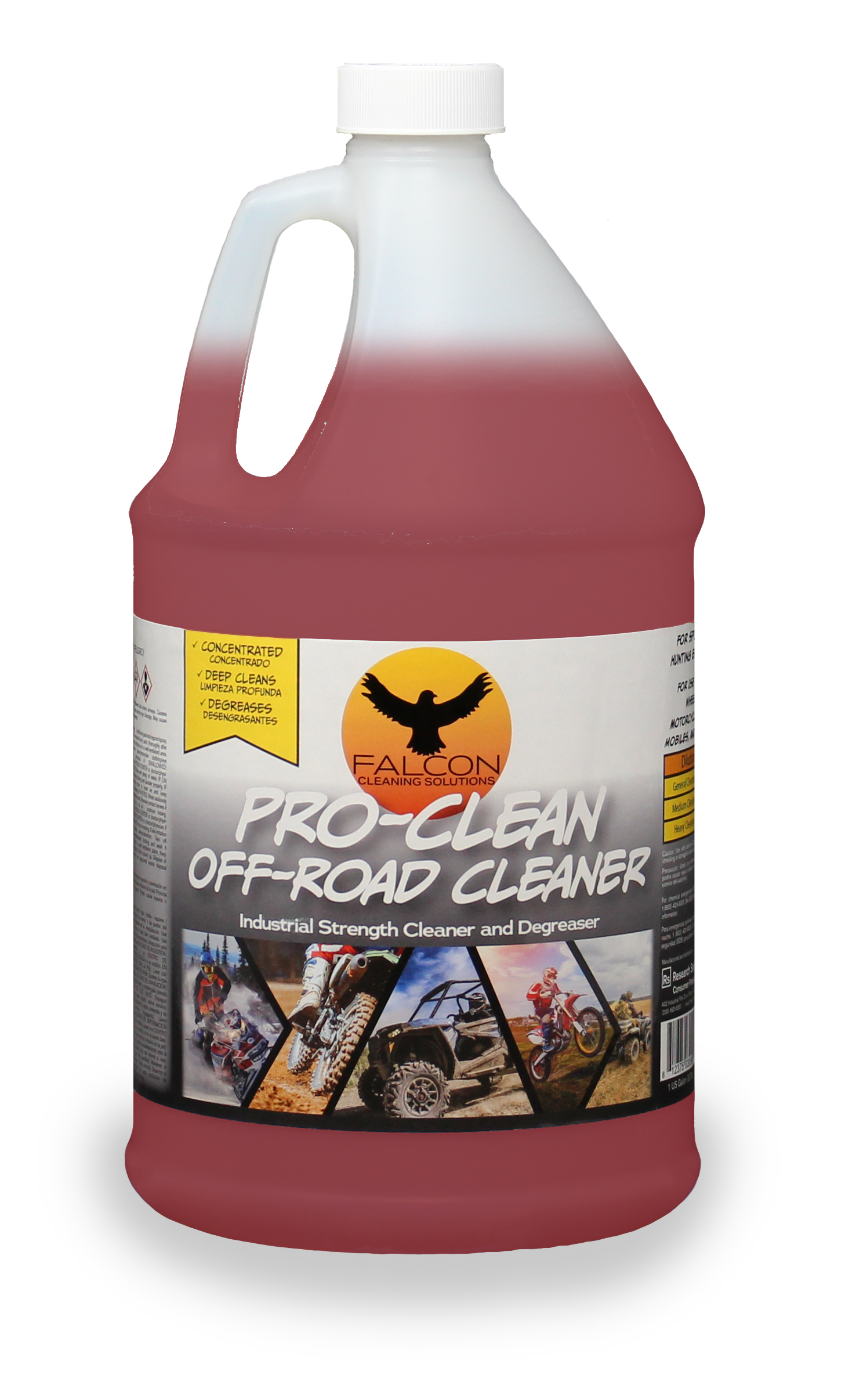 For sporting, hunting, and outdoor enthusiasts, Pro-Clean Off-Road Cleaner by Falcon Cleaning Solutions is a concentrated general-purpose cleaner that rapidly penetrates and breaks up grease, grime, dirt, and most common soils from off-road vehicles.